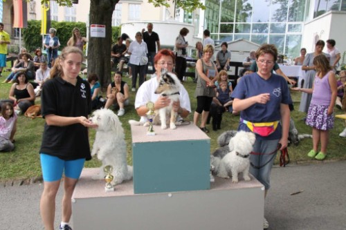 " (...) Es handelte sich hierbei um die Veranstaltung „Dog Day“ in Coburg. (...)Sie können es sich nicht vorstellen, wie sich Annie präsentiert hat. Annie hatte mit dem Umfeld überhaupt kein Problem – viele Menschen, Geräusche, Hunde etc. – Annie hatte nur Augen und Aufmerksamkeit fürs Frauchen. Ihr kleinen Übungen die sie mittlerweile kennt (Halt für Sitz, Twist und Round für das drehen an meiner Seite, Down für hinlegen) hat sie gezeigt wie ein „alter Hund“. Sie musste sich von kleinen Kindern anfassen lassen und eine doch etwas zickige Hündin passieren – das waren so die Aufgaben. (...)
