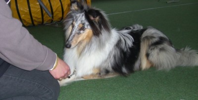 Das Publikum war für so einen jungen Hund doch noch sehr verwirrend - trotzdem hat sie sich nach Ablenkung sofort wieder an Frauchen orientiert.