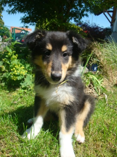 "(...)wir sind gestern gut mit Shadow nach Hause gekommen. Er war auf der Heimfahrt sehr lieb und hat dann erst einmal sein neues Zuhause unter die Lupe genommen. Bis jetzt kann ich nur Positives berichten. Er ist sehr offen und neugierig, hat seine " Geschäftchen " brav draußen im Garten erledigt, zeigt sich verspielt und verschmust(...)Er ist unerschrocken aber kein absoluter Draufgänger, ein echter Collie eben!!! Ich bin richtig stolz auf ihn. (...)